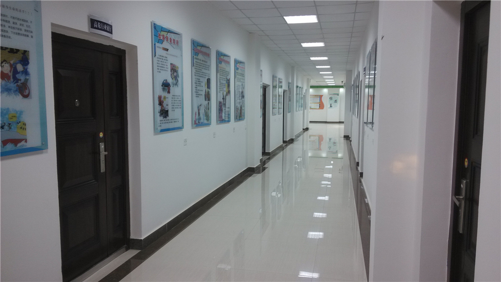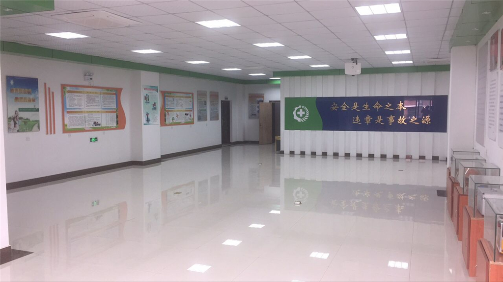 基地大厅区域的展示主要由展板展示、实物展示以及互动投影展示三部分构成。展板内容分为前言部分(国家领导人重要讲话及马鞍山市安全生产状况介绍)、职业卫生、冶金工贸三大板块;实物展示则为参观者提供安全生产劳保用品的实物展示;互动地投影的互动画面使得参观过程趣味性更强。